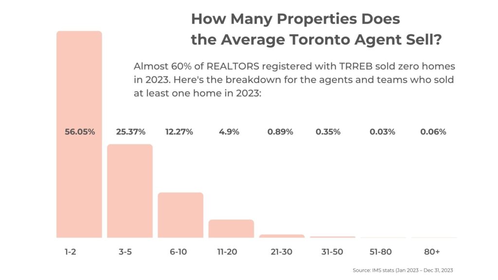 In 2023, 60% of REALTORS at TRREB sold 0 homes. Below, the breakdown for the agents and teams who sold at least one: