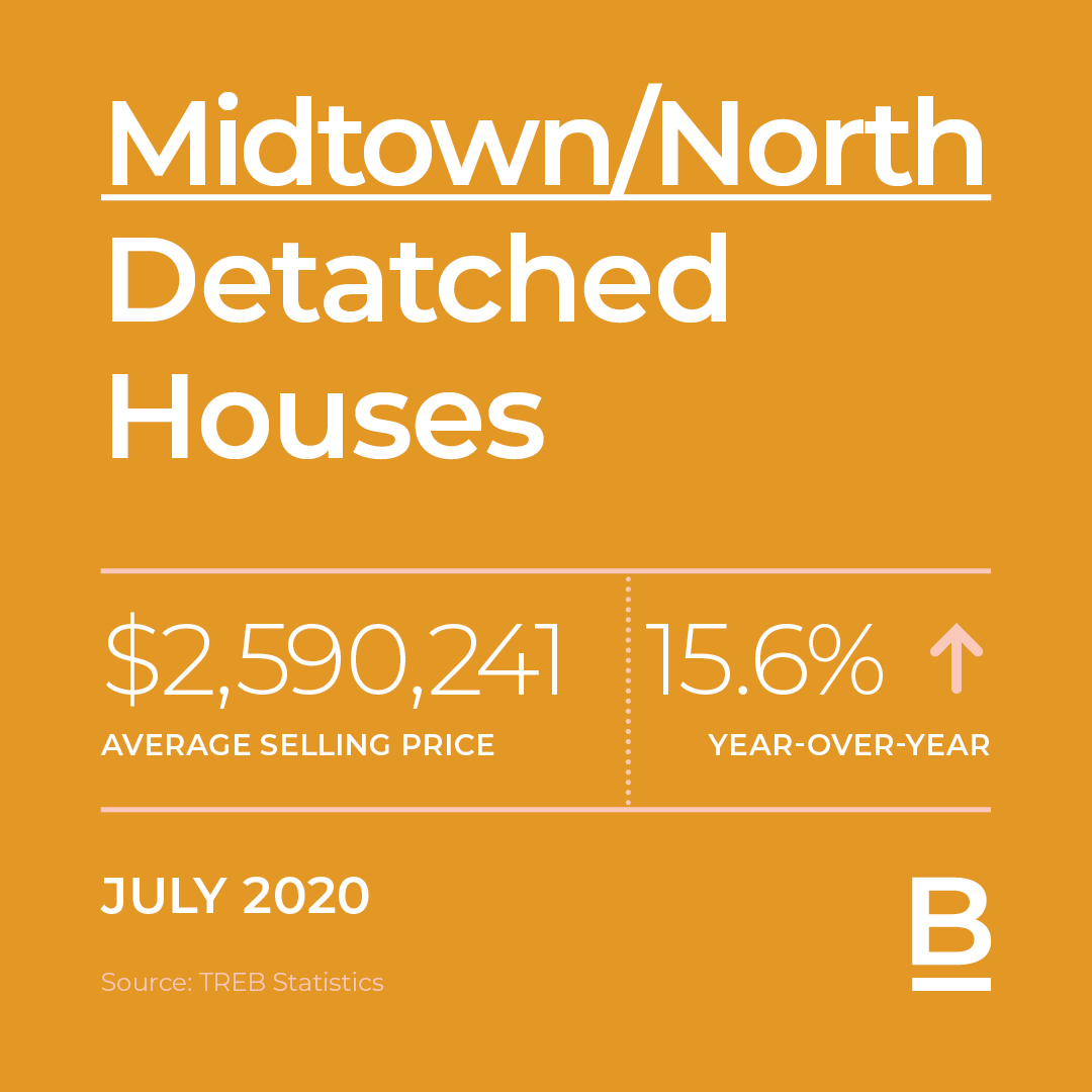 - Keep in mind: year-over-year stats are a bit misleading right now – July is traditionally a slower month, but given the lockdown earlier this year, we’re seeing a lot of activity this summer that would normally have happened in the spring