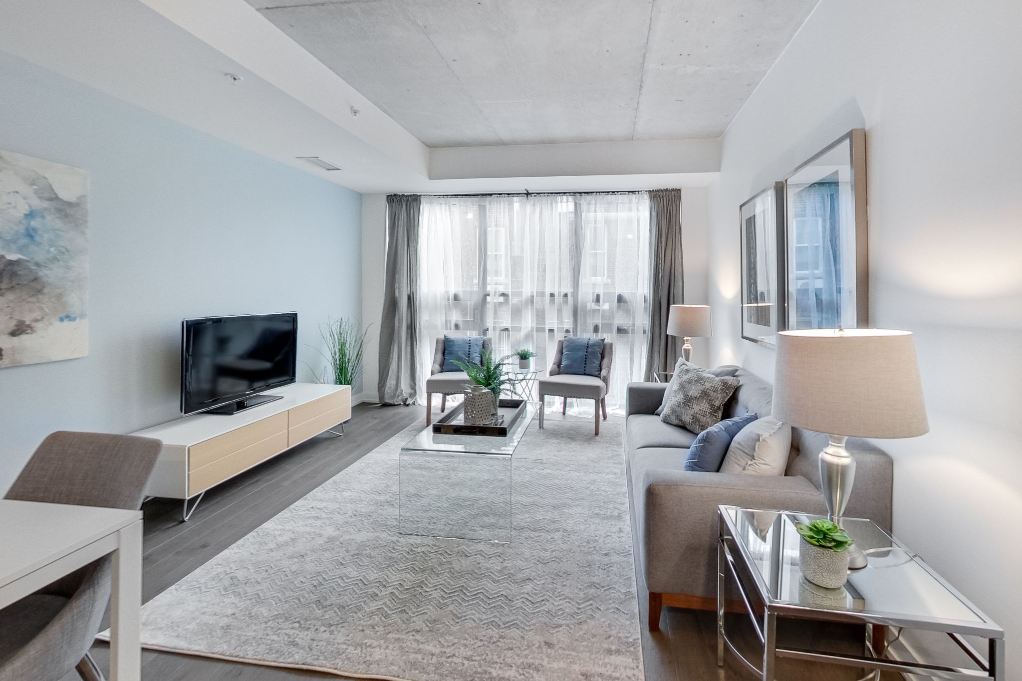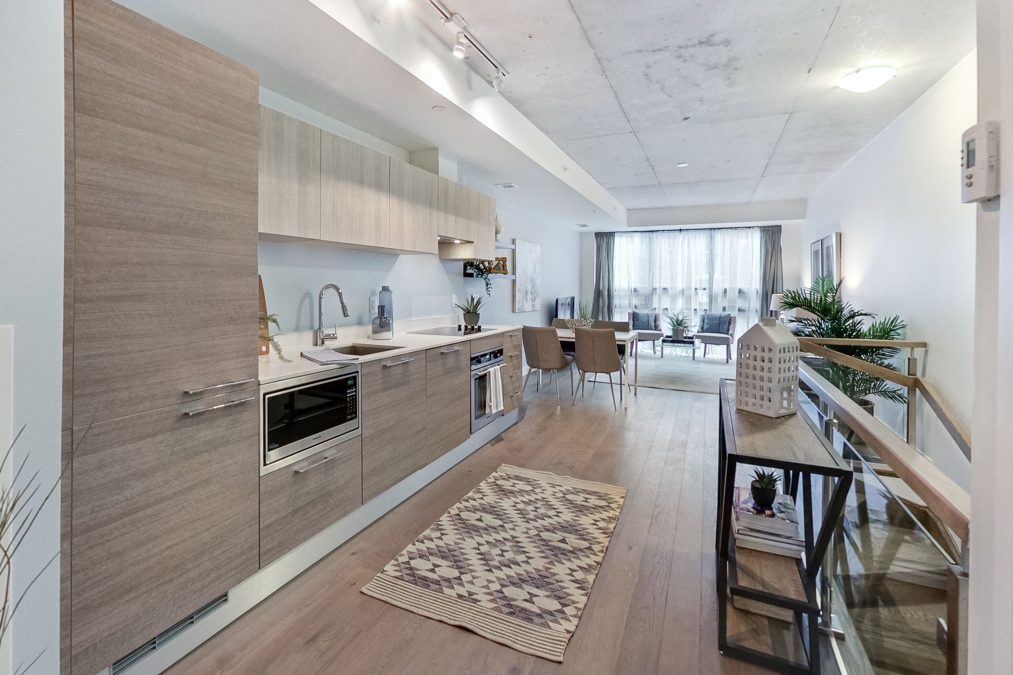 Duke is a modern mid-rise building that both respects and complements the streetscape around it. There are 92 units that range in size from 450 sq. ft. to over 1600. Named for its location Dundas West (DU) and Keele (KE), the building embraces the working-class roots of the neighbourhood with unique live/work designated laneway lofts, two storey ‘through units’ and terraces that let residents be part of the neighbourhood, not just reside there.
