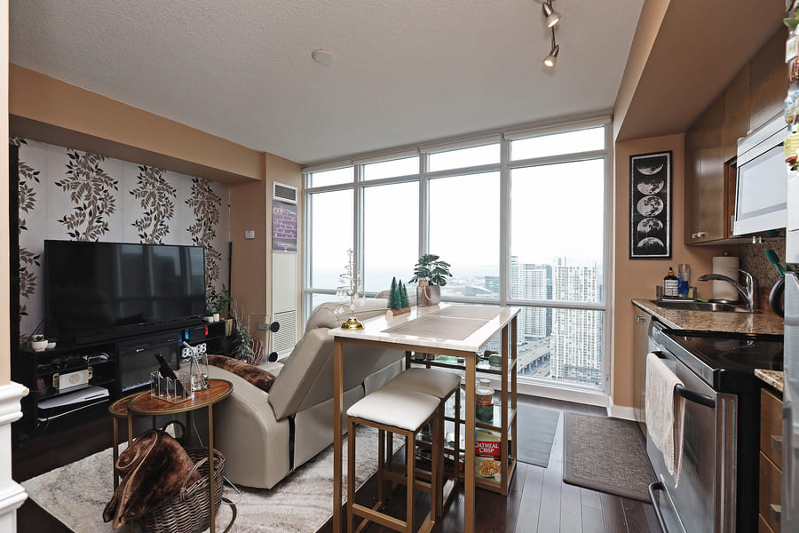 Send This Listing To A FriendFifty floors above the city, the noise fades and the view takes over. From this one-bedroom suite, you’ll see the lake and Toronto’s west skyline stretch out in full panoramic display — morning to night, season to season.