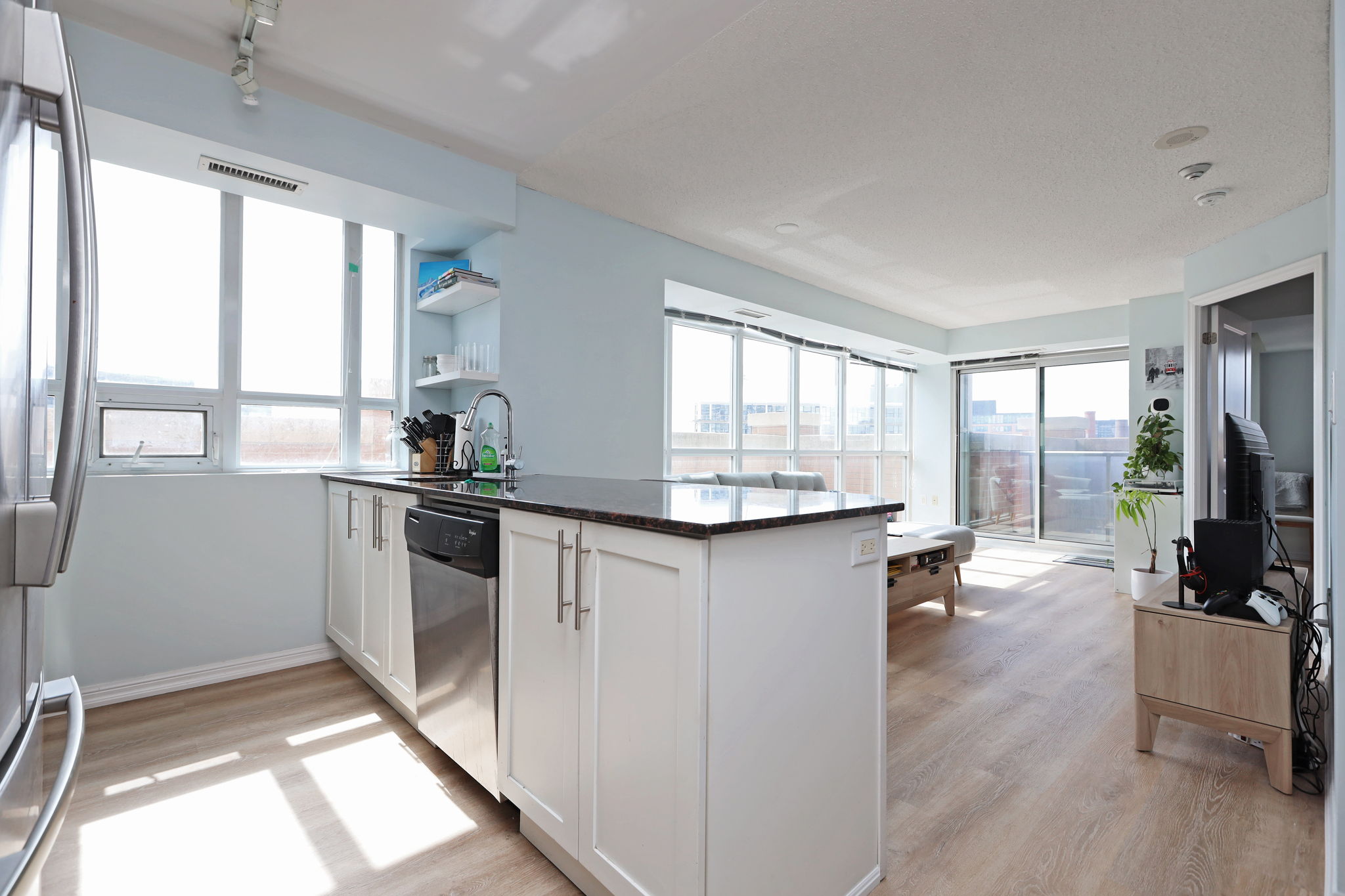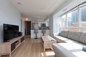Step outside and you’re in the heart of Liberty Village – one of Toronto’s most vibrant, walkable communities. Metro is open 24 hours, and you’re surrounded by cafés, restaurants, shops, banks, and the LCBO. The King Liberty pedestrian bridge connects you directly to King Street transit, while the lakefront and CNE grounds are just a short walk away.