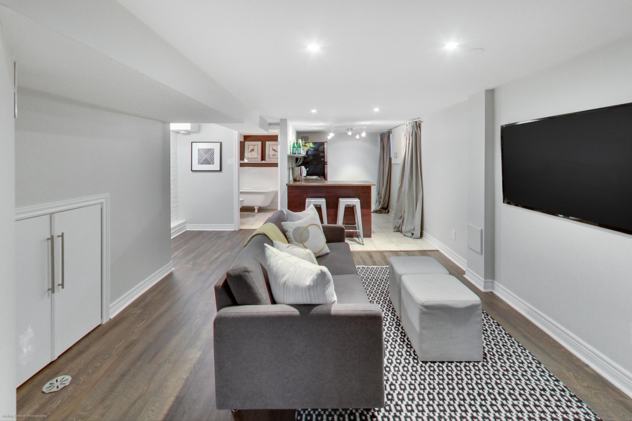- In-law suite set up in the fully-finished basement with kitchenette and full bath