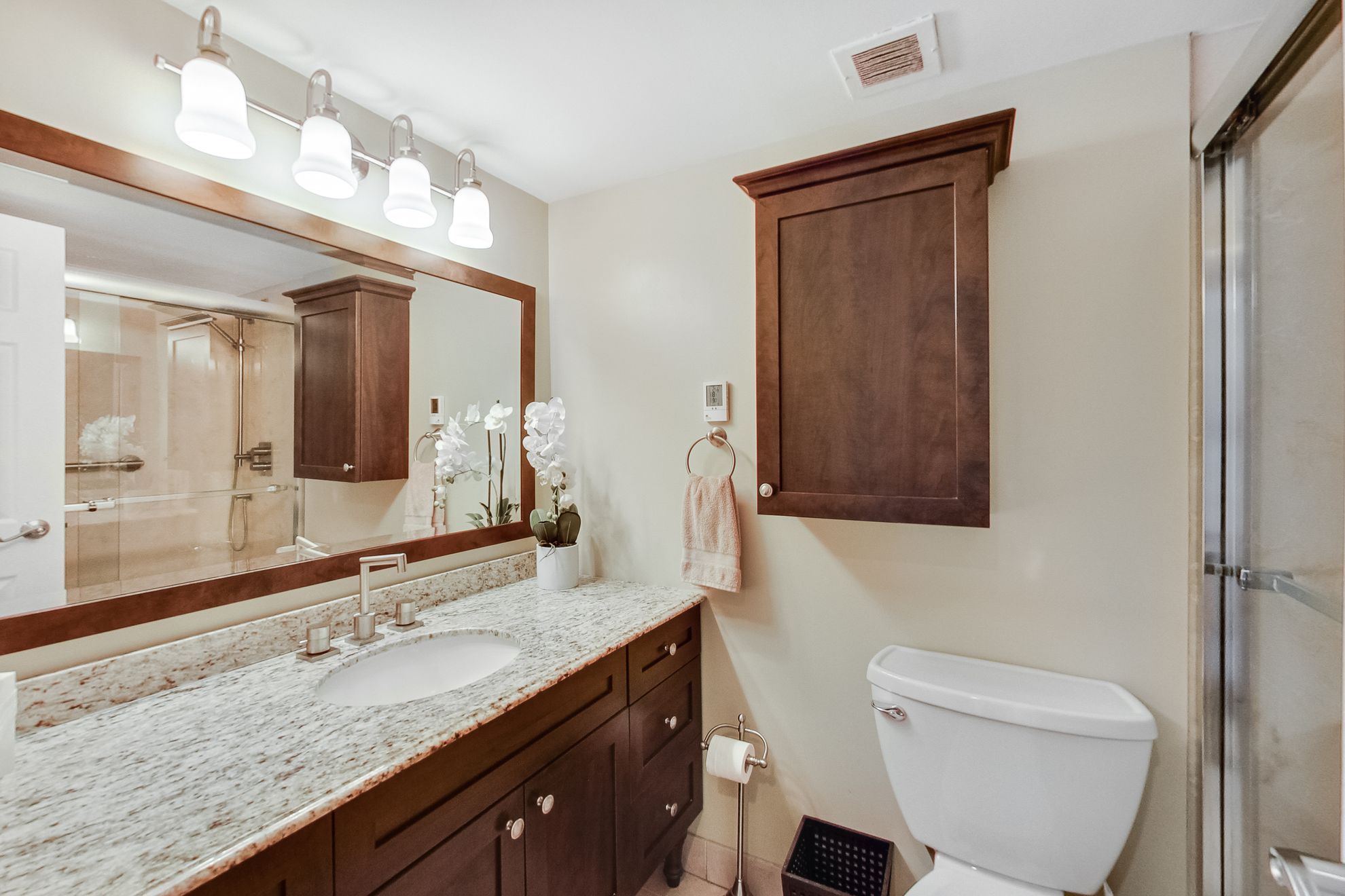 The completely new kitchen has granite counters and a center island with seating for 4. Both bathrooms are new, with heated floors and the rest of the flooring was also updated. You’ll find new engineered hardwood flooring throughout, except the spare bedrooms, which have new carpeting. There were so many thoughtful details including updated lighting fixtures, new crown moulding, baseboards and doors, all new appliances, new ceiling with a flat surface, new thermopane windows throughout, new window coverings and even a new laundry room.