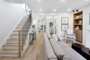 Additionally, in the same year, the fascia, and soffits were installed, along with a new heat pump, sump pump, high-efficiency HVAC system, and hardwood floors. The basement also received luxury vinyl plank and interior waterproofing, and a new electrical system was implemented. The bathrooms and kitchen were completely revamped with custom-designed cabinetry and built-in appliances. Even the backyard shed received a facelift in 2023.