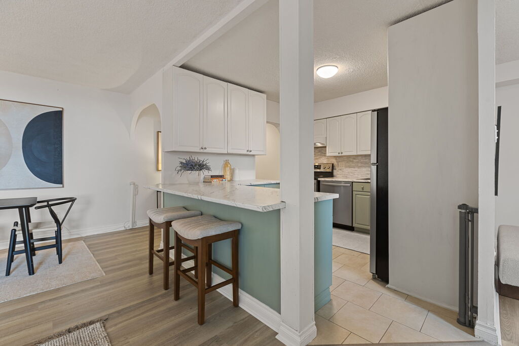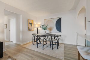 The condo’s practical layout includes a full four-piece bathroom, ensuring that there’s enough room for everyone’s morning routine, as well as the aforementioned half bath in the primary bedroom, which adds an extra layer of convenience. The den, which can easily serve as a home office or playroom, offers flexibility to accommodate the changing needs of a growing family.