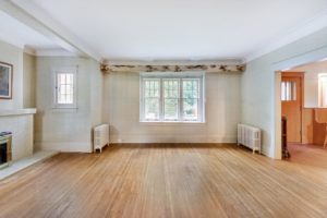 - All the original details – from the fireplaces (2!) to the oak trim, flooring and panelling throughout to the pocket door (yes! A real pocket door) between the formal living room and dining room — it oozes with character