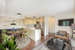 Perched on a hill overlooking a lush park, this stunning end-of-row corner townhome offers an unmatched lifestyle of comfort and modern luxury. Bathed in natural light from two sides of windows, enjoy serene treetop views that create a peaceful, private retreat. The sellers have spared no expense with premium upgrades including brand new flooring, a fully renovated kitchen with new stove and dishwasher, high-efficiency tankless hot water system, new AC unit, modern washer and dryer, stylish new light fixtures, and custom built-in storage off the kitchen. This thoughtfully designed home features two spacious bedrooms (with functional closet organizers), two full bathrooms, and an open-concept living space ideal for entertaining. The crown jewel is your private rooftop terrace, an expansive oasis perfect for morning coffee, evening relaxation, or hosting unforgettable BBQs under the stars. Includes one parking spot and storage locker. This is more than a townhome it’s a completely modernized sanctuary with park views and every upgrade you could want. Don’t miss this rare opportunity.