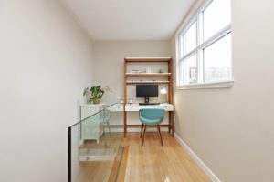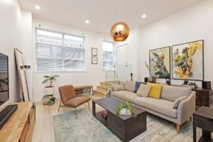 Continue up to find the updated main bath and two bedrooms. Large double closets and big windows make both bedrooms inviting and bright. For those working from home, the third floor offers an open concept work den beside another big window, overlooking the rooftop terrace. Here, you’re separated from the hum of everyday life, without being tucked into a dark corner.