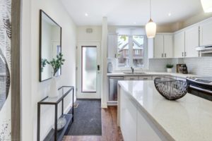 Just coming up the walkway you start to feel that this house is something special. Its colourful exterior oozes charm even amongst the other Riverdale gems on the street. Open the door and discover just what a difference the right layout makes in maximizing every square foot in a home. Not ready to give up your Riverdale family home kitchen? This one is for you. It’s not a ‘starter home’ kitchen by a long shot with a large picture window, centre island and more cupboards than in some homes twice the size.