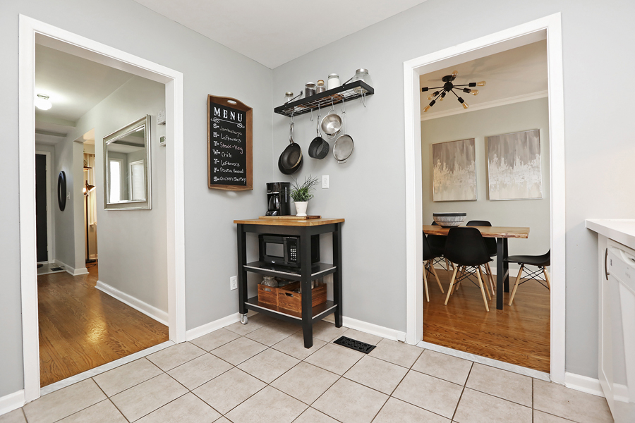 Inside, you’ll find an open concept living / dining room perfect for entertaining or cozy Sundays with the family. The kitchen has stainless steel appliances and stone counters. Plus there are hardwood floors throughout.