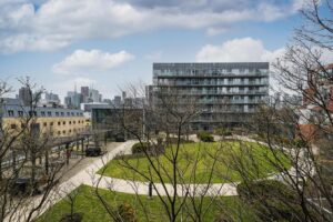 Regent Park continues to evolve in ways grounded in real use. FreshCo and Tim Hortons are all nearby, along with the Pam McConnell Aquatic Centre. Streetcars and bike lanes connect easily across the city. Downtown and the future Ontario Line Moss Park Station is only minutes away. It’s a neighbourhood that supports both routine and movement without overcomplication.