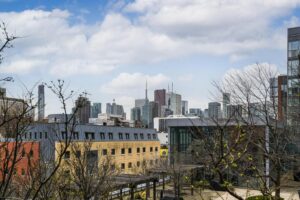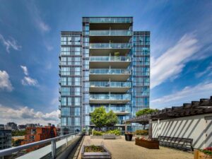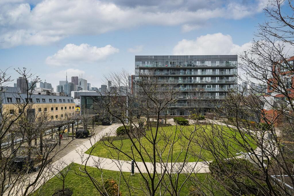 - Full-Width West-Facing Balcony. Overlooks the sky park terrace and community garden, giving you usable outdoor space with a quieter outlook and a partial view of the CN Tower.