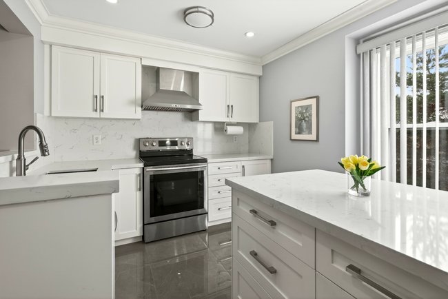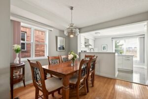 The main level is designed for real use. An open living and dining area connects directly to a fully renovated kitchen with a functional island—something that’s often missing in this category. It’s a layout that supports everyday routines, whether that’s quick weekday meals or hosting without feeling cramped.
