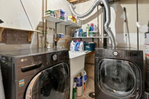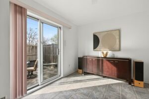 The lower level adds flexibility that most townhomes don’t offer. A finished family room walks out directly to a private, fenced-in patio—creating a space that can shift between a play area, work-from-home zone, or a quieter second living space. This level also connects to the garage and includes a large storage room with a new washer and dryer, keeping the practical side of daily life organized and out of the way.