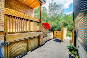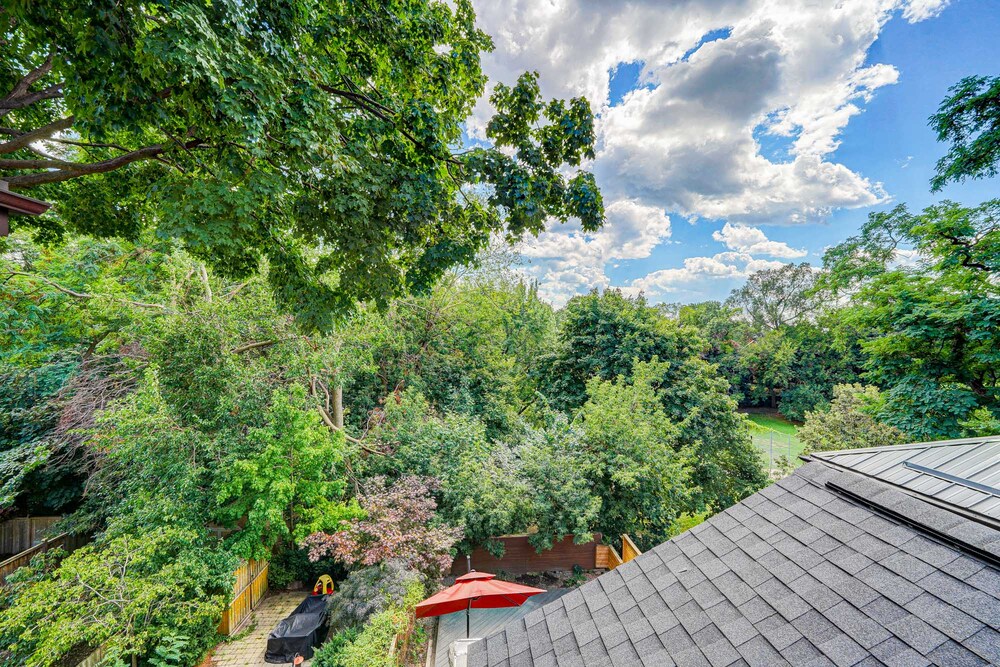 At the back of the home, the setting is what truly distinguishes it. The property backs directly onto Ravinia Gardens, creating a peaceful, ravine-like backdrop with no rear neighbours. It’s a rare sense of privacy in the city—green, quiet, and ever-changing with the seasons.