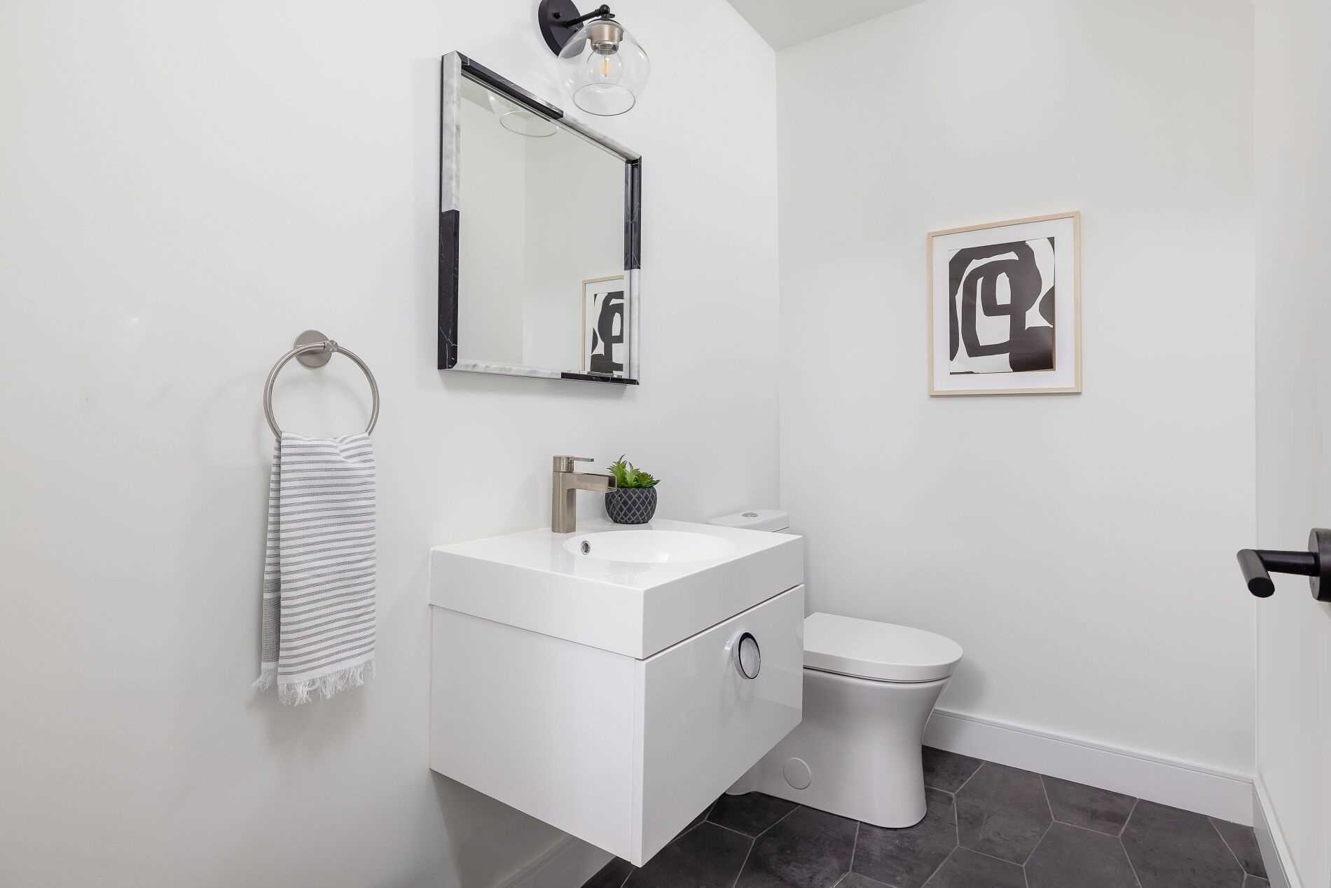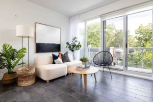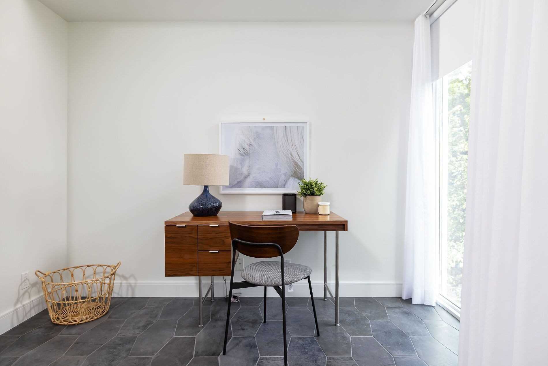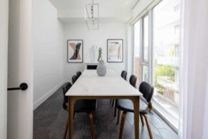 Simply gorgeous designer-owned stacked townhouse in friendly Leslieville. Great spacious layout with custom upgrades throughout. Open concept main level with a stunning kitchen and a dining room that can be easily converted into a third bedroom. Generous sized bedrooms on the second level with private balconies with treetop views and gas hookups as well as double closets in each room. Premium locker and parking included. Amazing Leslieville location.