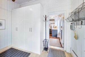 That’s just the indoor living space, outside is another beautiful story. The kitchen opens to a heated mudroom with ample custom cupboards, storage space and through to a two-tiered back deck made with special custom wood decking called Perennial Wood. And guess who installed it? None other than HGTV’s Bryan Baeumler as part of an episode of Leave It To Bryan.