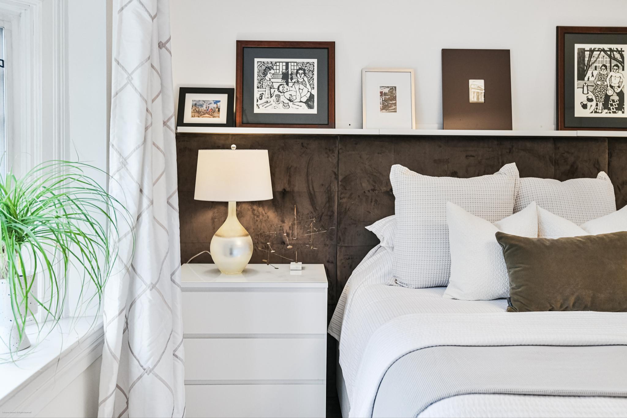 There’s hardwood floor throughout the home. And a mainfloor powder room is just to the left of the gorgeous Edwardian wooden staircase leading to the 2nd floor. The primary bedroom is on this floor and is something to behold. The south-facing bay window brings in tons of light and there is more than enough room for a king-size bed and end tables of just about any size. And, because storage is an ongoing theme in this home, you’ll also find floor-to-ceiling, wall-to-wall built-in closets complete with custom organizers. This is in addition to a walk-in closet with organizers and a frosted glass window that lets in lots of light. The other bedroom has amazing built-in shelves and storage. It’s currently being used as an office but would make a good sized bedroom as well.
