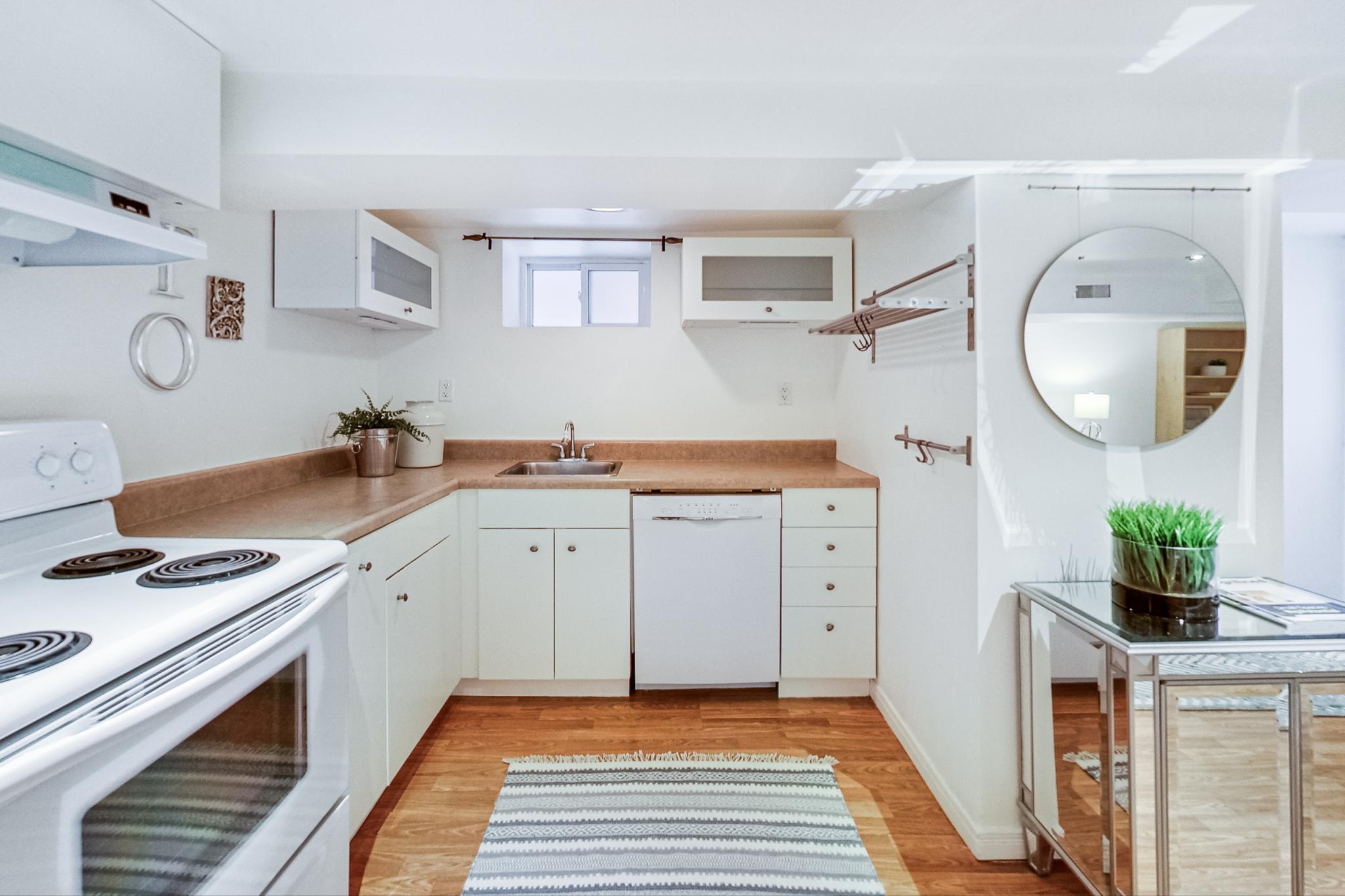 Through the fence is a separate entrance to a very spacious one-bedroom apartment with an oven, fridge, dishwasher and even a separate laundry room with washer and dryer. It’s currently vacant so it can be rented out at market rates or repurposed for other uses without any hassles.