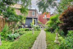 The backyard is truly magical – there’s no other word for it. The deck, the flowers and shrubs and trees. Even the house-facing side of the detached two-car garage is designed to look like a cottage to add to the tranquil nature of the backyard. And for a home located so close to the heart of it all, it’s very private and quiet.