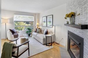 Inside, the freshly painted living room feels instantly inviting. A gas fireplace anchors the space—picture winter evenings with a favourite series and a real place to put up your feet. Morning light pours in, brightening everyday routines and making the main floor feel calm and easy.