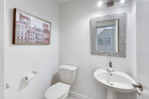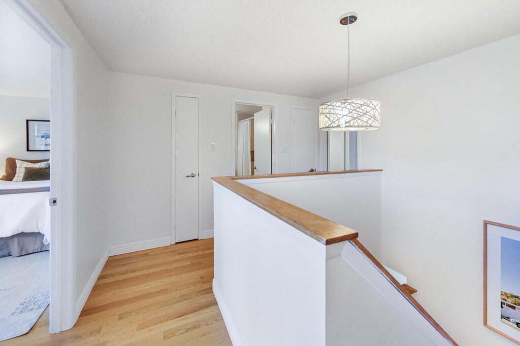 Upstairs, both bedrooms are generously sized. The primary is extra-large—room for a king-size bed and side tables, with space left over for a reading chair or a dresser you actually like. An expansive walk-in closet keeps wardrobes organized, and the private two-piece ensuite adds everyday convenience. Two linen closets in the hall mean towels, bedding, toiletries and extra essentials each have a proper home.