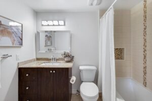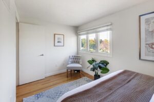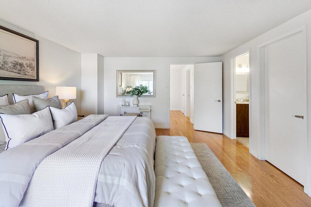 - Bedrooms that don’t compromise. The primary easily fits a king bed, has an expansive walk-in closet, and a private ensuite. The second bedroom is full-size too—perfect as a permanent bedroom, a guest room, or an office that still leaves space for a queen bed.