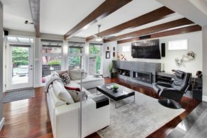 - Nothing to do but move in and enjoy! Fully renovated inside and out with high-end fixtures and designer chosen colours: heated floors, modern chef’s kitchen with 6 burner professional gas range, 4 fireplaces, 4 spa-like bathrooms, exposed wood beams and more!