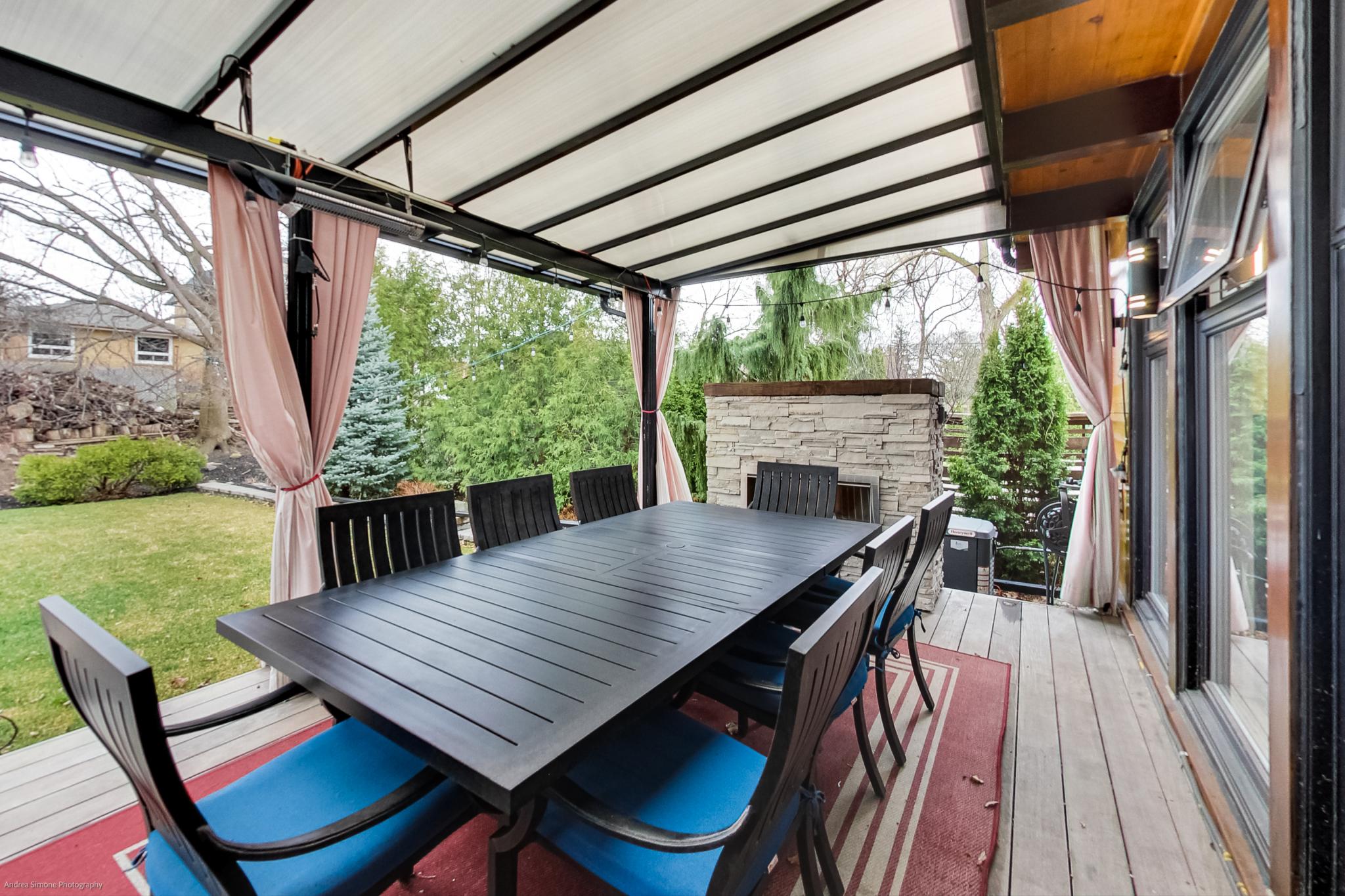 - An outdoor living area that dreams are made of. Professionally landscaped, the back is complete with a covered patio and gas fireplace. The ideal secluded space for BBQing all summer long.