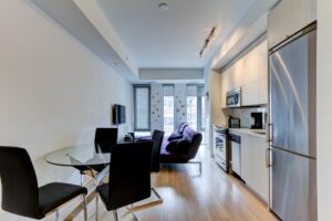 Send This Listing To A FriendFully furnished and move-in ready, this turnkey studio in the heart of Toronto’s Fashion District is the ideal pied-a-terre or city crash pad. Located in a boutique building with just 87 suites, you’re steps from King and Queen West, with bars, cafes, groceries, and The Well shopping mall all close by.