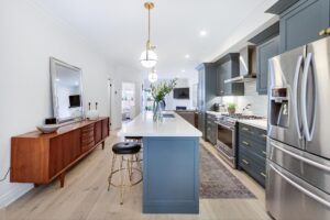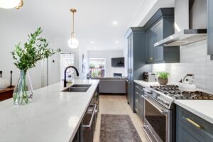 - Stunning Custom Kitchen: The heart of this home, the custom-designed kitchen, is an absolute showstopper. Its green cabinetry is not only beautiful but also highly functional. With a pantry and a built-in wine/bar cabinet, it’s a dream come true for both designers and chefs.