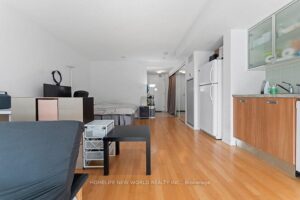 *PRICE IMPROVEMENT!* RARE FIJI MODEL – 425 SQ FT WIDE-CONCEPT STUDIO + OWNED LOCKER! This is a true livable space with a FULL balcony. Steps to TMU, UofT, Hospitals & the subway. BEST VALUE in the Bay St Corridor! Open-concept Kitchen, floor-to-ceiling windows, large balcony, private ensuite laundry and 24-hour Concierge. Vacant Possession on closing!