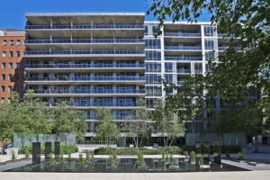 One of the highlights of Lofts 399 is the landscaped courtyard with a serene water garden. It’s a peaceful oasis in the bustling city, offering a tranquil space to relax and enjoy nature. The indoor resistance pool adds to the luxurious feel of the building, providing a perfect spot for exercise or relaxation.