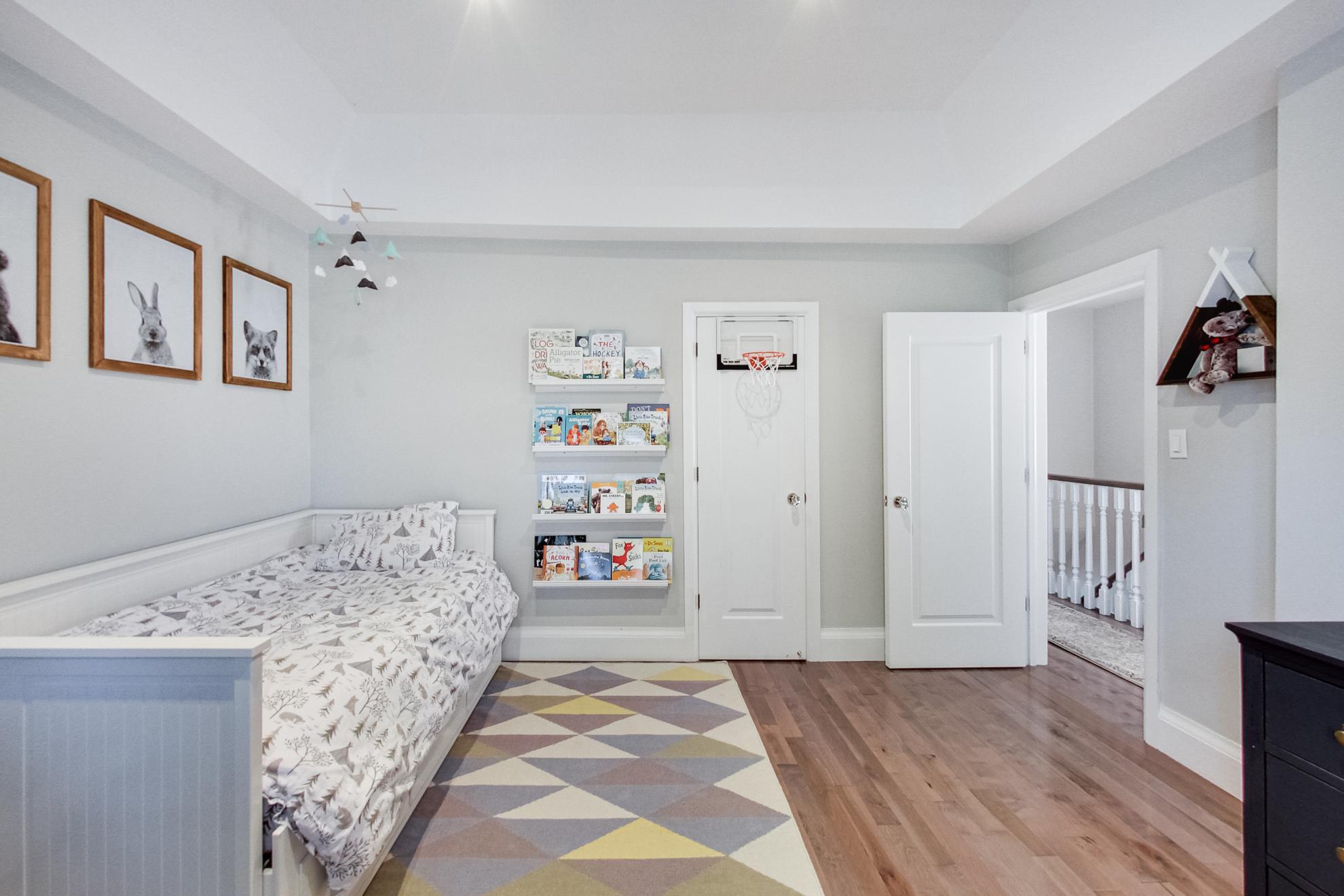 Upstairs, you’ll find three bedrooms, all with vaulted ceilings, recessed lighting and large closets. Updated hardwood floors not only look fantastic, but those with small children will appreciate the squeak-free exit at bedtime.