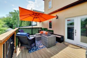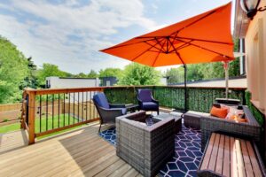 - The 150-ft deep lot means you have room for a private front drive and a big backyard for indoor/outdoor living. A large deck leads from the kitchen and overlooks the yard. It’s the perfect spot to host a BBQ or keep an eye on the kids and the dog as they burn off some energy running around the yard.