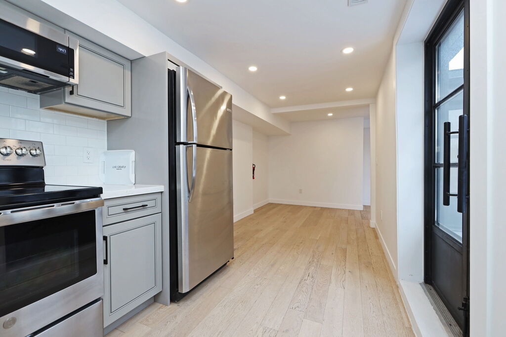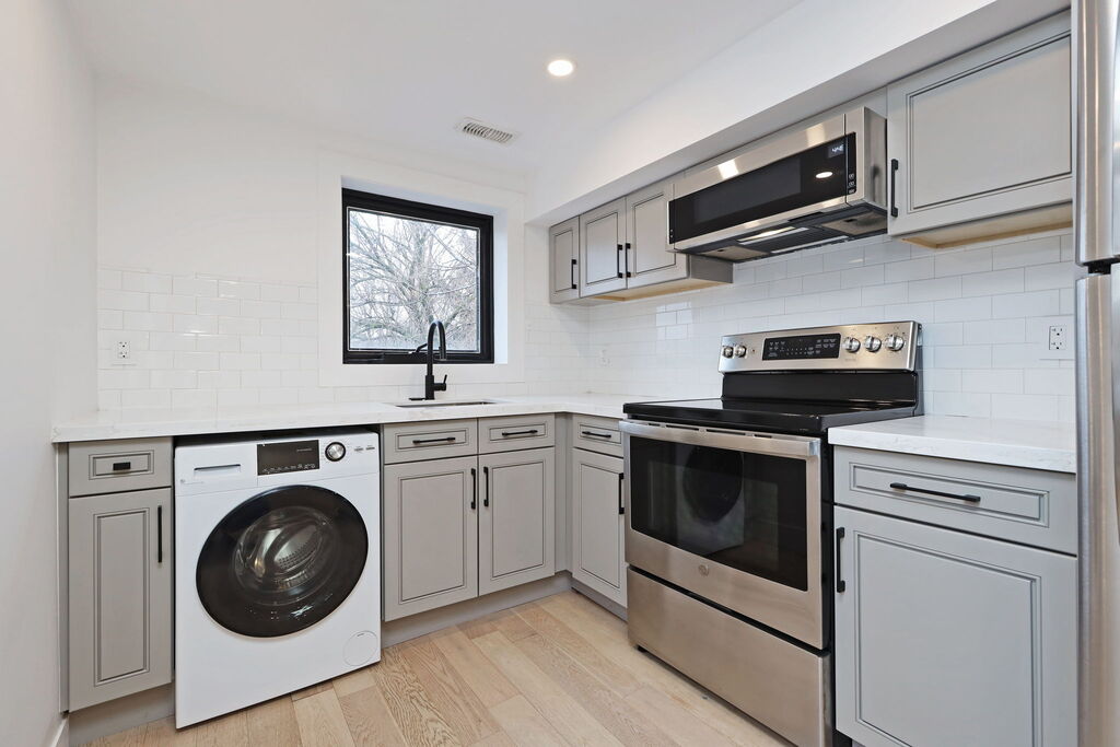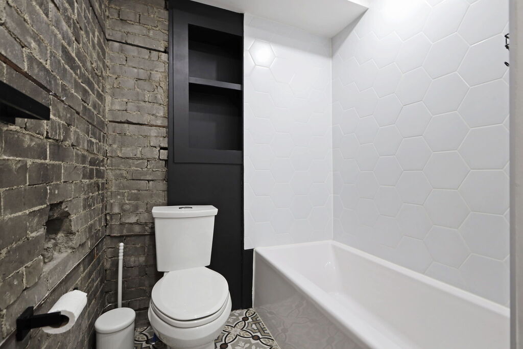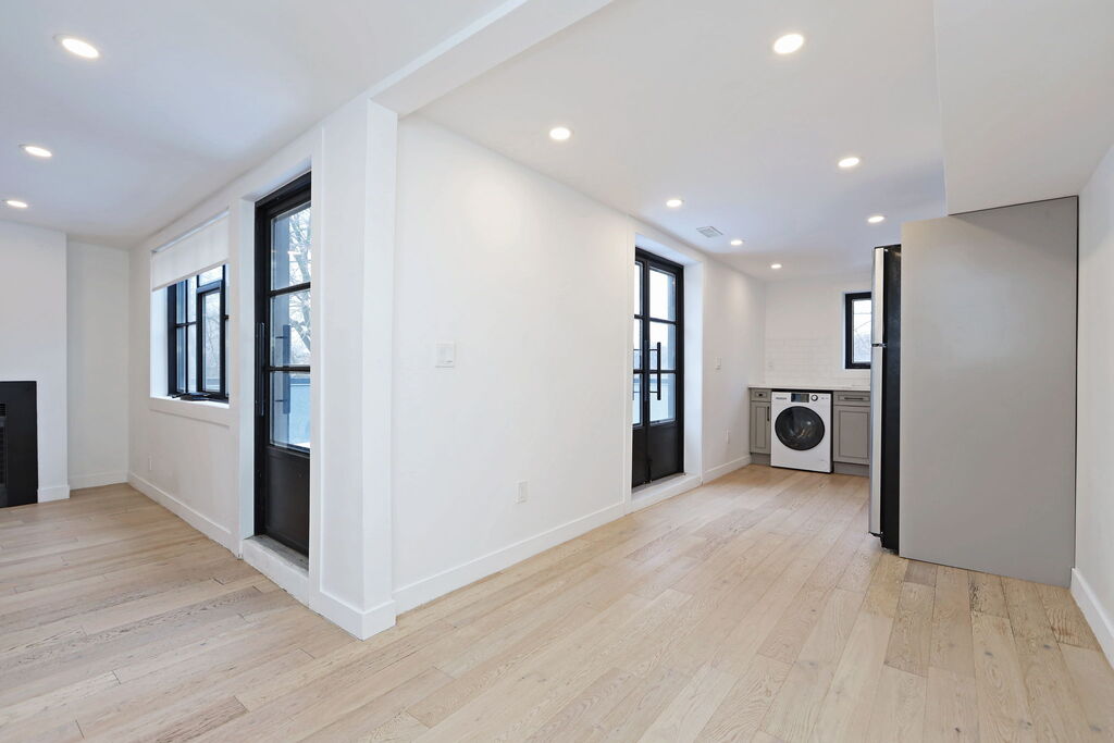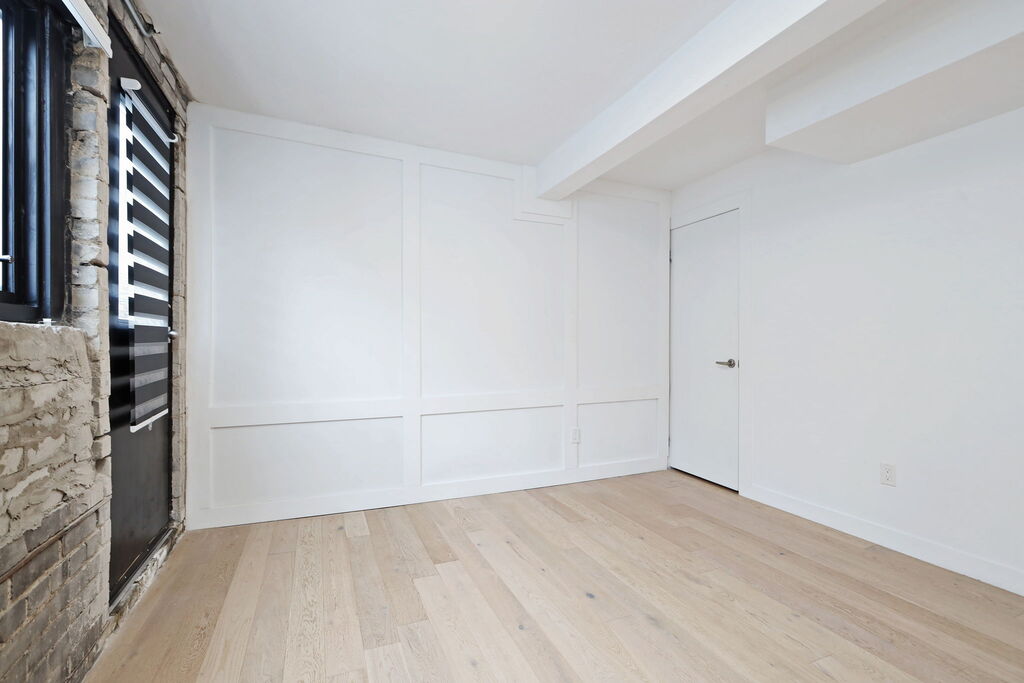 Inside, you’ll find abundant natural light, exposed brick accents, a modern kitchen with quartz counters, an electric stove, a large fridge, and a brand-new 2-in-1 washer/dryer. With only one other unit in the building – used occasionally by the owners, it’s incredibly quiet. Clean, contemporary design throughout, with a smart layout, large windows, and a decorative fireplace.