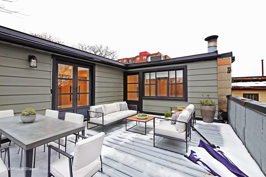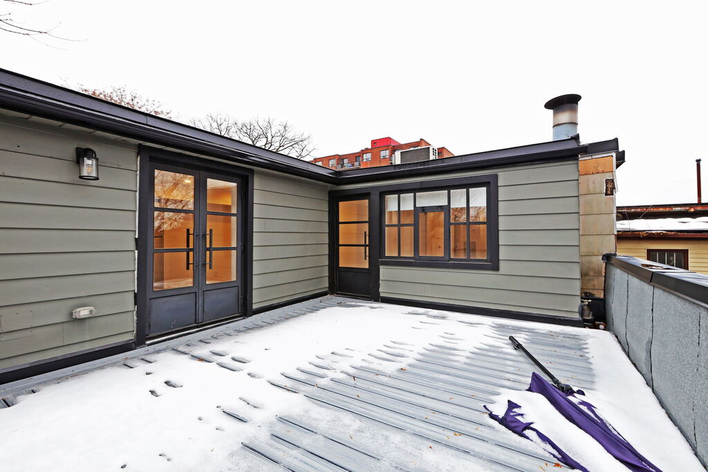 privacy, and a rare outdoor space. Located above a beloved neighbourhood coffee shop (with a quiet business directly below the unit), this rear second-floor unit features a large 250-square-foot private terrace with walkouts from both the kitchen and living room.
