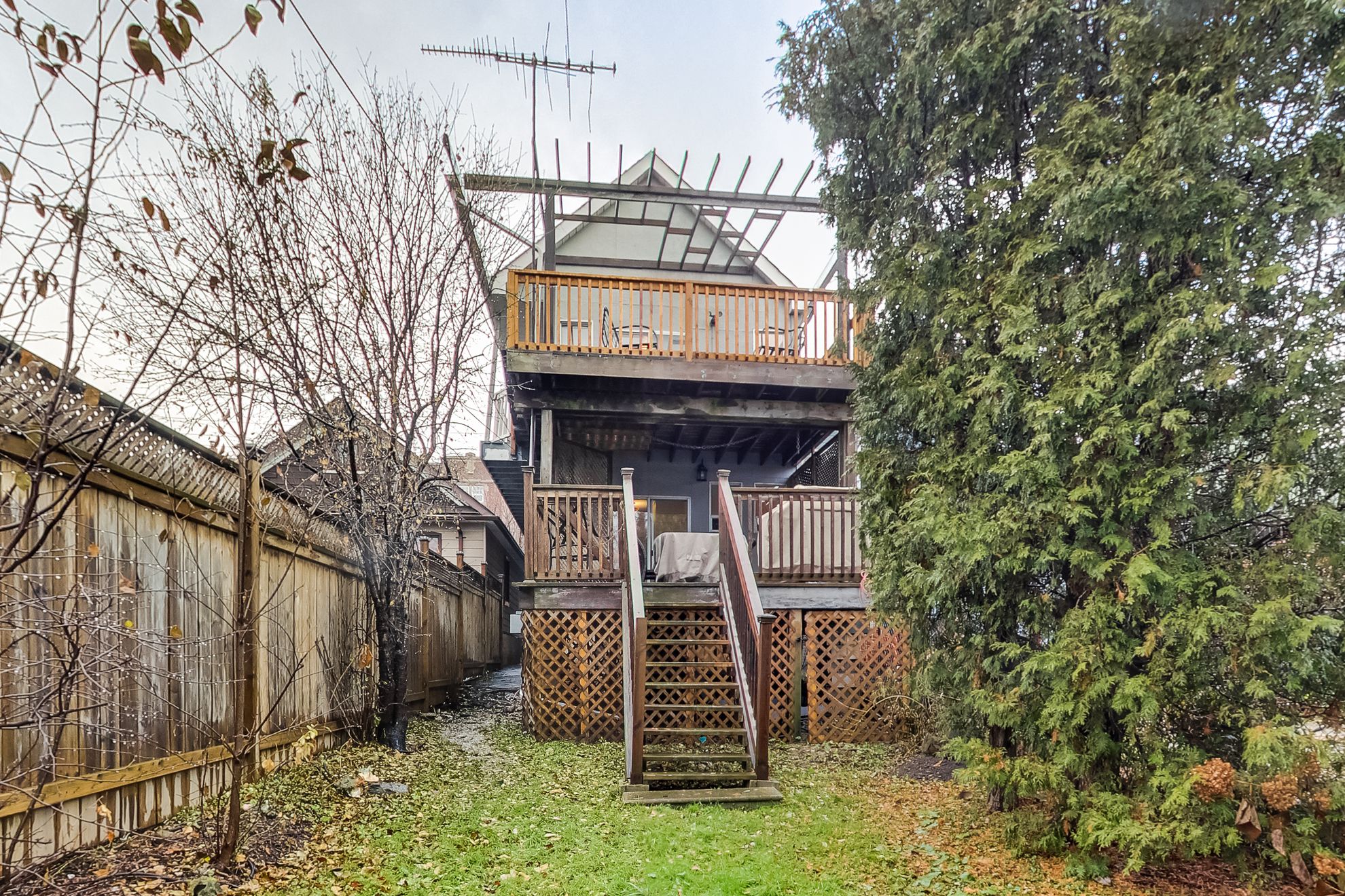 In addition to the incredible interior, the outside also delivers. There are 2 fantastic decks, and a south-side wrapped balcony. Plus, there is a large grassy yard for kids to run around or to take the party outside. And a large custom-built shed for storage