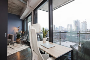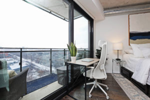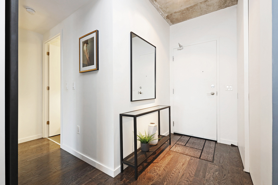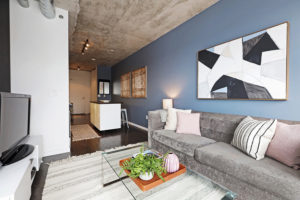 But that’s just the beginning. The well-thought-out layout feels way bigger than you expect. Soaring ceilings, floor-to-ceiling windows and gleaming laminate floors make the space feel airy and bright. Exposed ducts and concrete ceiling drive home the downtown loft vibe, setting the stage for your front row seats to unobstructed north and city views.