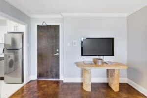 Parking is currently located a block away, a temporary arrangement that’s expected to shift underground in about eight years. For now, it’s secure, reliable, and included in the monthly cost.