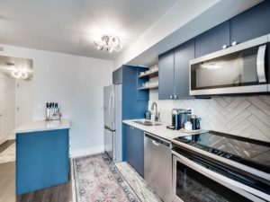 Send This Listing To A FriendThis renovated and updated 1+1 bed, 1-bath with parking at the edge of Lake Ontario packs a lot of punch into every single one of its 583 square feet (plus balcony!). From the instant you walk through the doors you know this unit is different — from the layout to the view to the tasteful way it has been updated. There’s a real den, spacious enough for an office or an exercise area or extra living space, plus a spacious primary bedroom with large closet. The kitchen features all new cabinets, hardware and marble floors and countertops. New flooring runs the length of the unit. The regular size kitchen appliances (no Barbie fridge here) are new as is the washer/dryer and all of the lighting has been updated.