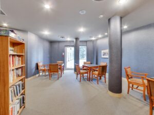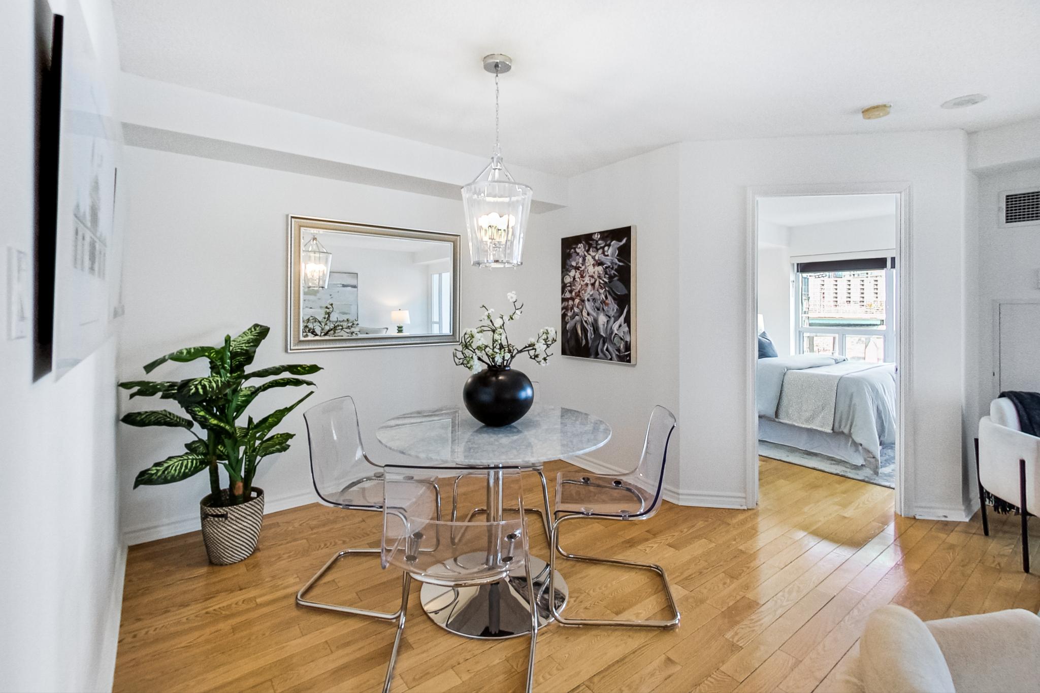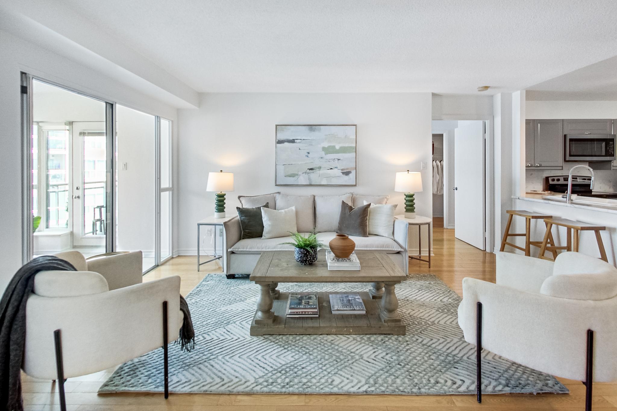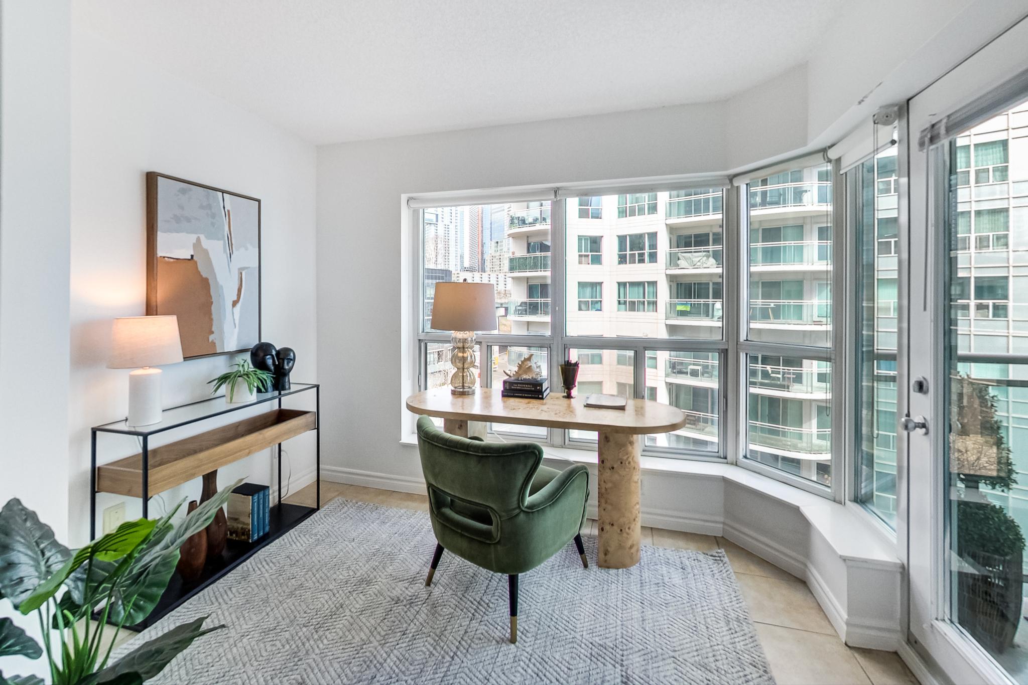 Queens Harbour’s twin buildings can be found near the intersection of Queens Quay West and Dan Leckie Way in Toronto’s Waterfront neighbourhood. The two 11-story towers have a nautical vibe, resembling an oceanic cruise ship, with their rounded exteriors of white concrete and pale blue tinted glass. The luxurious amenities at 600 Queens Quay West feature the gym, sauna, party room, and a parking garage with ample visitor parking spaces.
