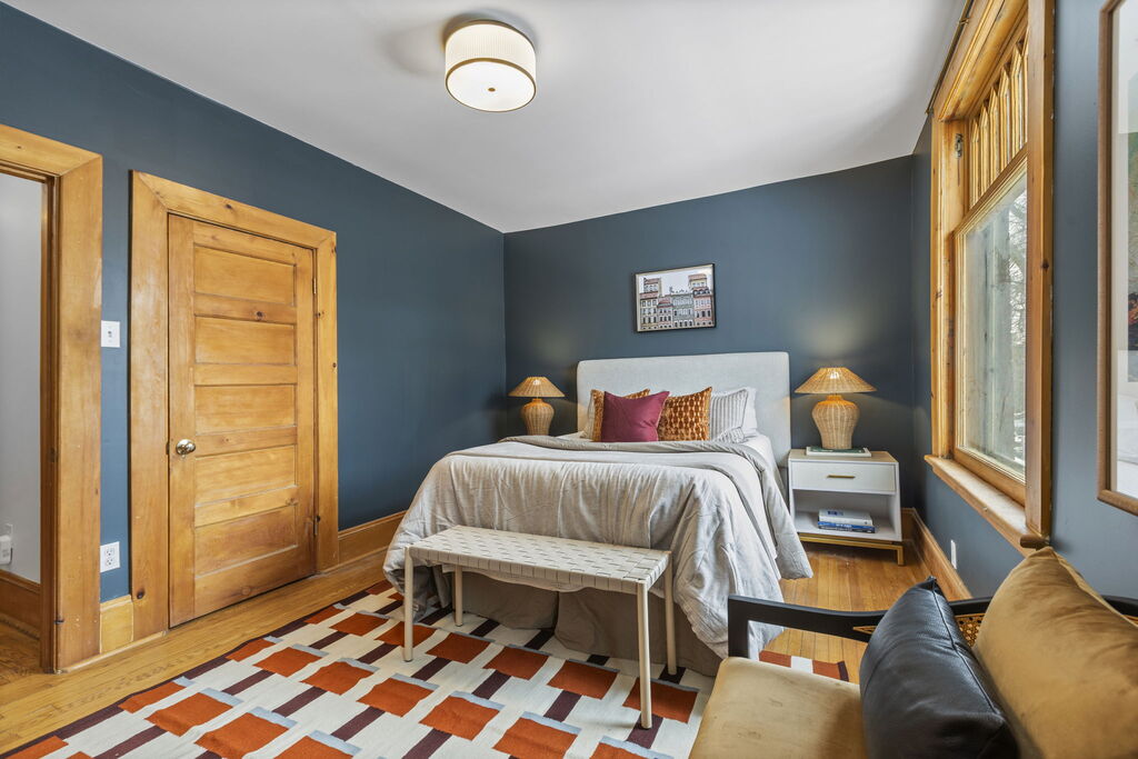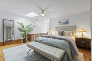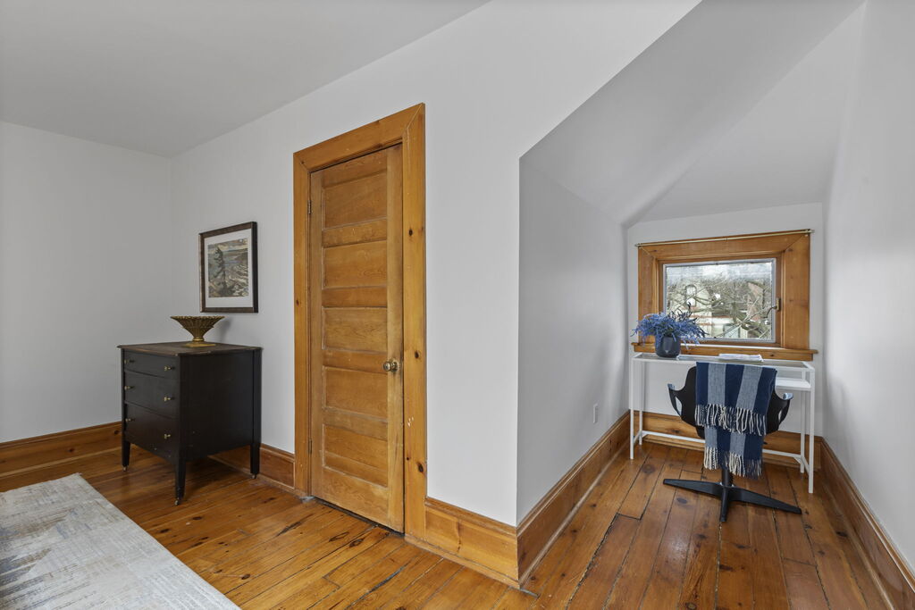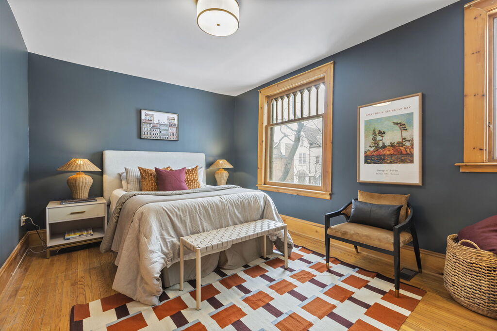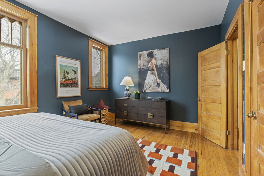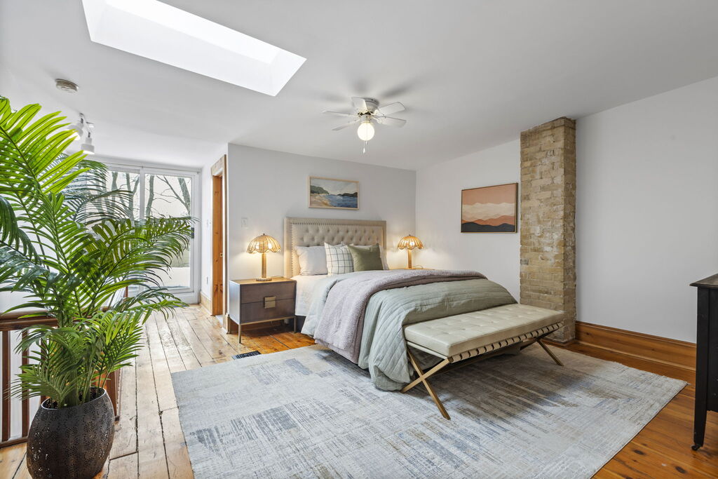 The layout is where this home shines. On the second floor, three good-sized bedrooms sit together, along with a full 4-piece bath. It’s the configuration young families look for but rarely find in houses of this era: kids on one level, no compromises. Above, the third floor offers a large fourth bedroom with skylights, a 3-piece ensuite, and walk-out access to the roof, a natural candidate for a future roof deck. Whether you envision a private primary retreat, a teenager’s domain, or a quiet family room/home office, the separation across levels creates flexibility that adapts as life changes.
