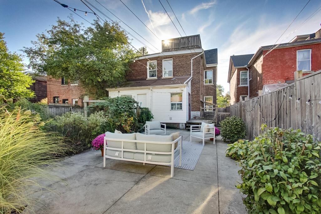 Outdoor space is built into every level. The front porch overlooks Ossington and doubles as handy bike storage. The upper unit enjoys a private rooftop deck. The main-floor unit has exclusive use of the backyard — paved and low-maintenance, but easily set up for summer dining or entertaining. At the rear, a detached two-car garage adds serious value, whether you use it for parking, storage, or future creative use.