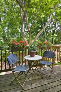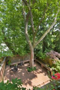 Speaking of the backyard, prepare to be enchanted by the low-maintenance oasis it offers. Shaded and covered in lush greenery, this outdoor retreat provides a peaceful setting for relaxation. The stone patio and deck, complete with built-in seating, beckon you to bask in the beauty of your surroundings. No grass to mow means more time for summer BBQs, morning coffees, or evenings spent with a good book or a glass of wine. And with no neighbours behind, you’ll enjoy added privacy as the property backs onto the Cottingham Tennis Club.