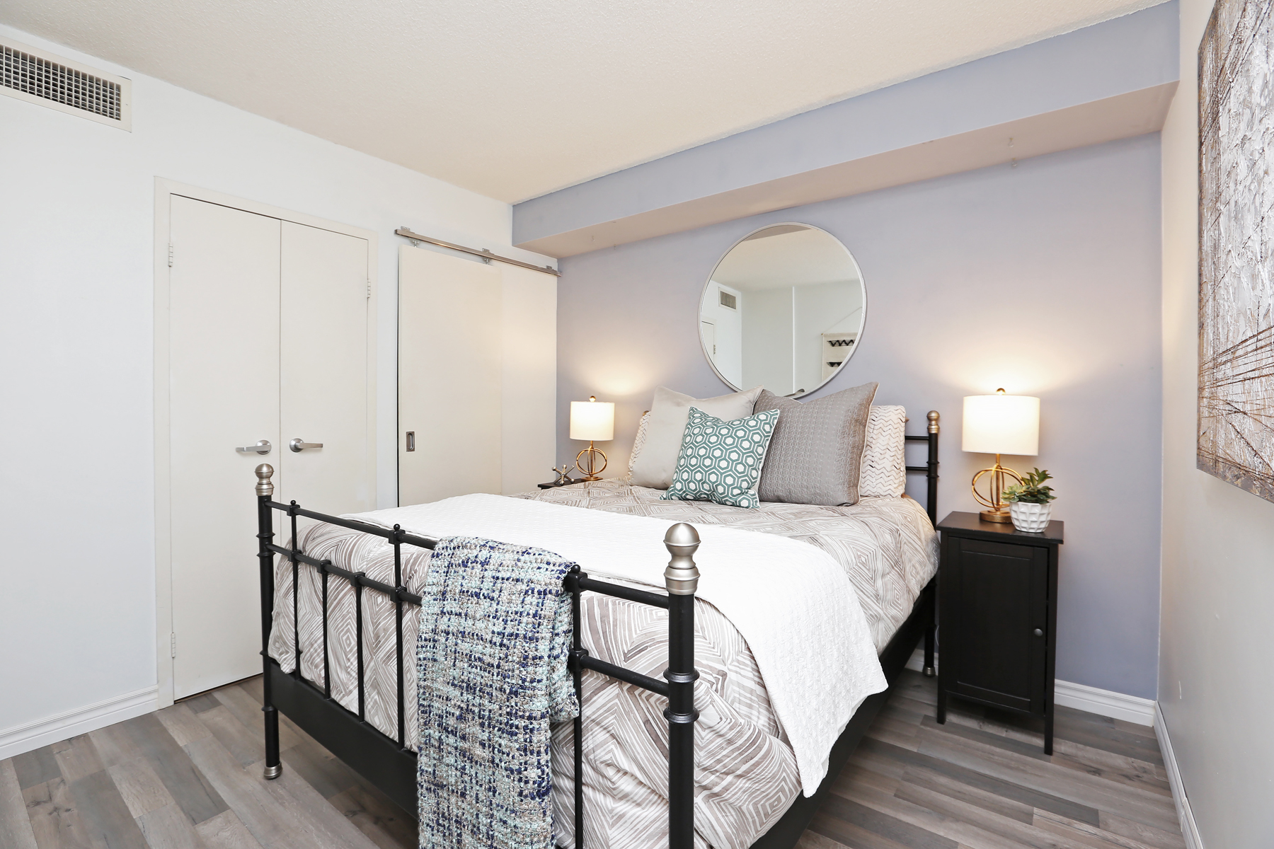 This 1 bedroom condo makes excellent use of every inch. Plus with updates like newer flooring and bathroom vanity, custom roll-down shades and new quartz countertops, there’s nothing cookie about it. The wide living space with east-facing floor-ceiling windows is flooded in natural light. And sliding bedroom door add to both the design and the practicality.