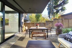 4. Indoor–Outdoor Living That Actually Connects. An oversized sliding wall opens the main floor to a covered rear patio, making the transition to the backyard seamless. There’s a gas line for the BBQ and space to host long dinners outdoors. It extends the living area in a practical way—protected from the elements, easy to use, and integrated into the flow of the home rather than tacked on.