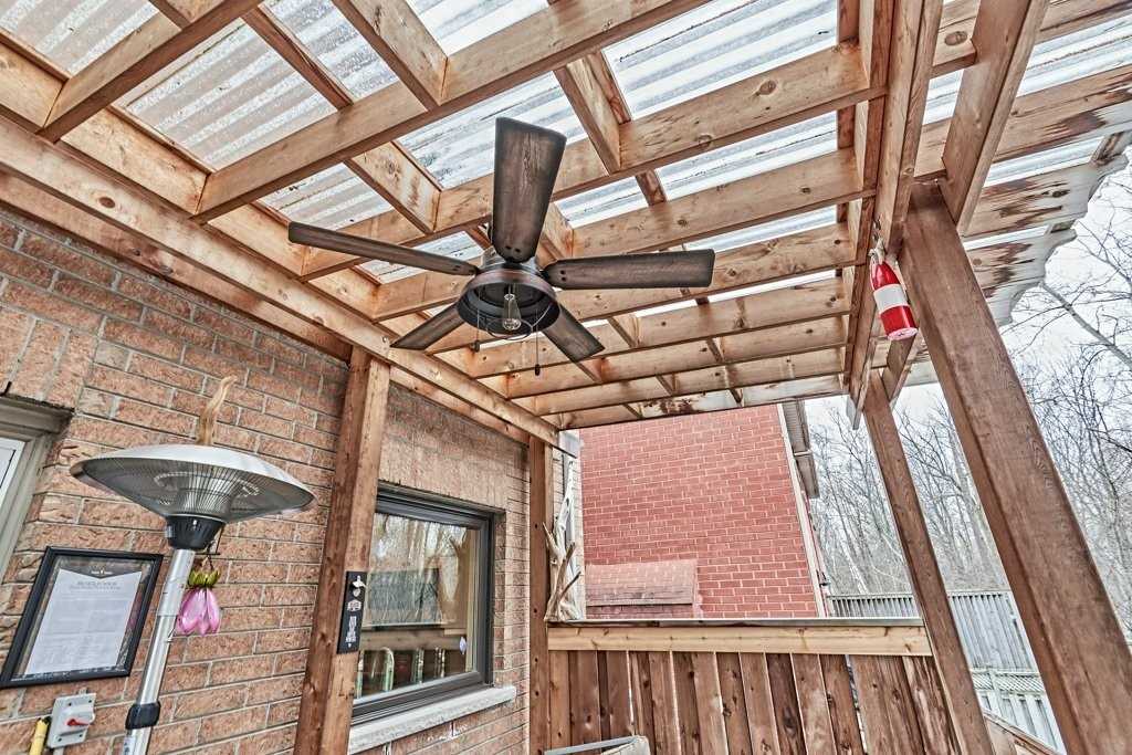 - Show-stoppingĀ eat-inĀ white kitchen with stainless steel appliances, grey backsplash, stone counters and walk-out to a back deck