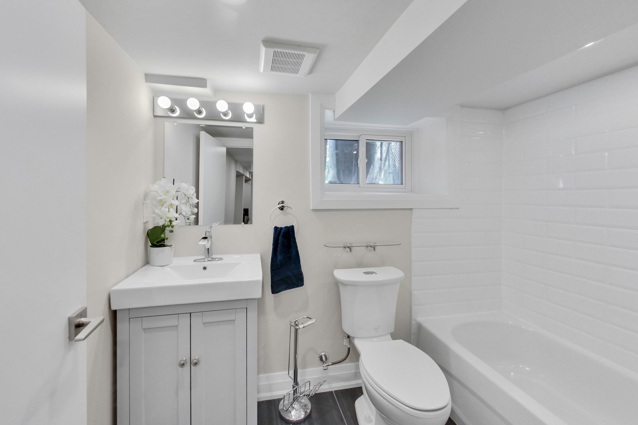 Upstairs, you’ll find three good-sized bedrooms with big windows showing off a beautiful tree canopy view to the south. Head down to the basement for a 4th bedroom, a four-piece bath and family room– perfect for a teenager or for a nanny/in-law suite.
