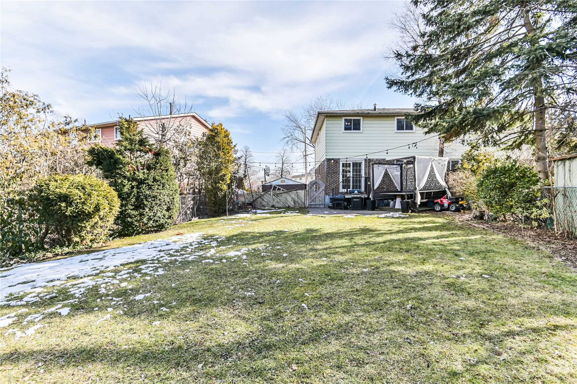 - Large eat-in kitchen with walkout to a massive 156ft deep backyard with a large patio overlooking a lush backyard with fire pit